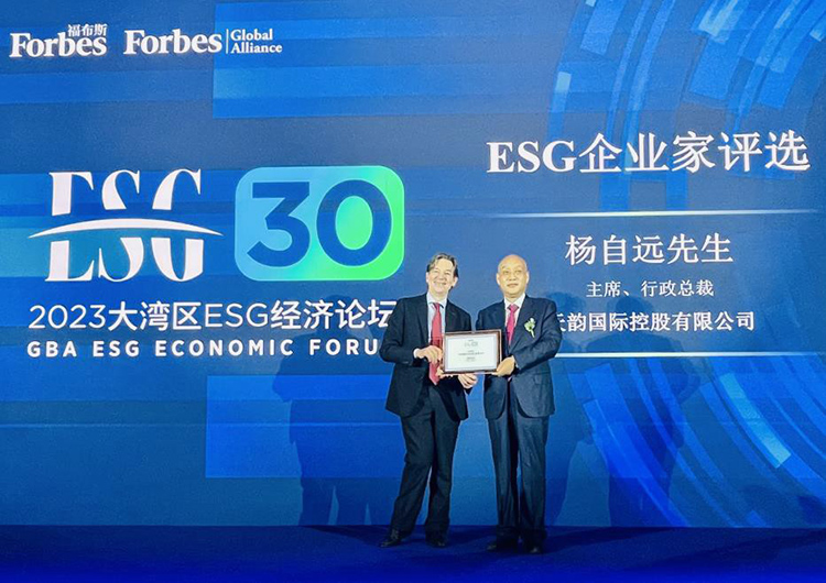 天韻國際致力推動 ESG 管理 可持續高質量發展備獲認同中國領先的品牌加工水果產品銷售商及制造商天韻國際控股有限公司(“天韻國際”及其附屬公司統稱“集團”,股份代號 : 6836.HK)欣然宣佈,集團主席兼行政總裁楊自遠先生,榮登福布斯中國“2023大灣區ESG企業家30評選”,頒獎典禮早前于“福布斯2023大灣區ESG經...